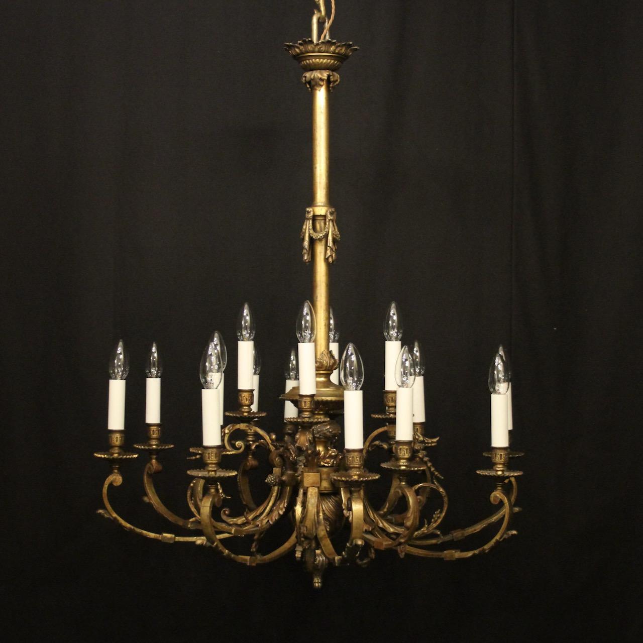 French Gilded Bronze 16 Light Antique Gasolier