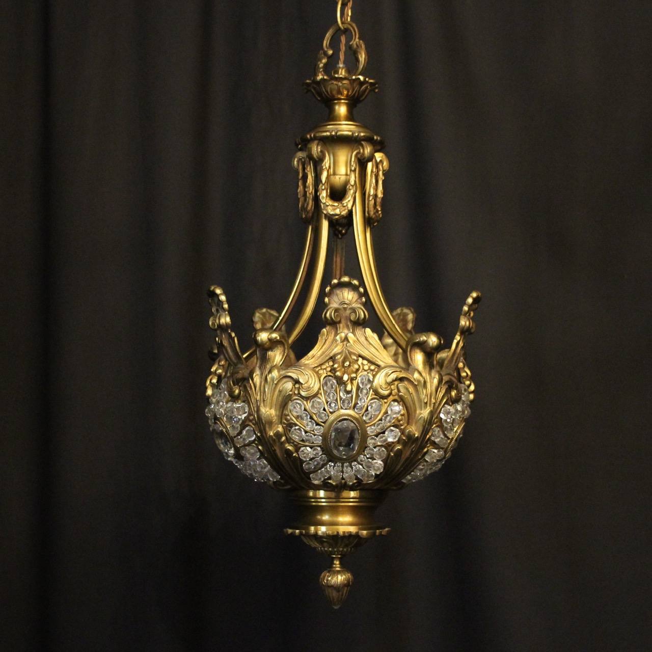 French Gilded Bronze 3 Light Antique Ceiling Light
