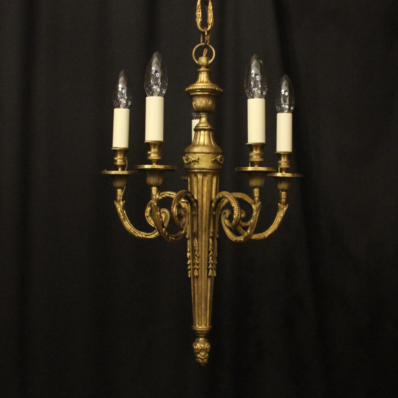 French Gilded Bronze 5 Light Antique Chandelier