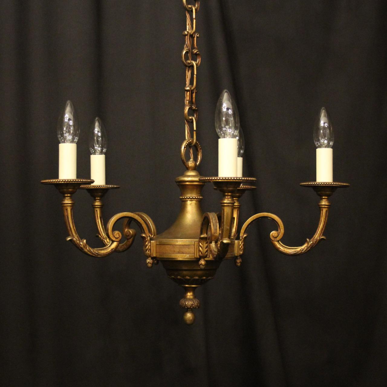 French Gilded Bronze 5 Light Chandelier