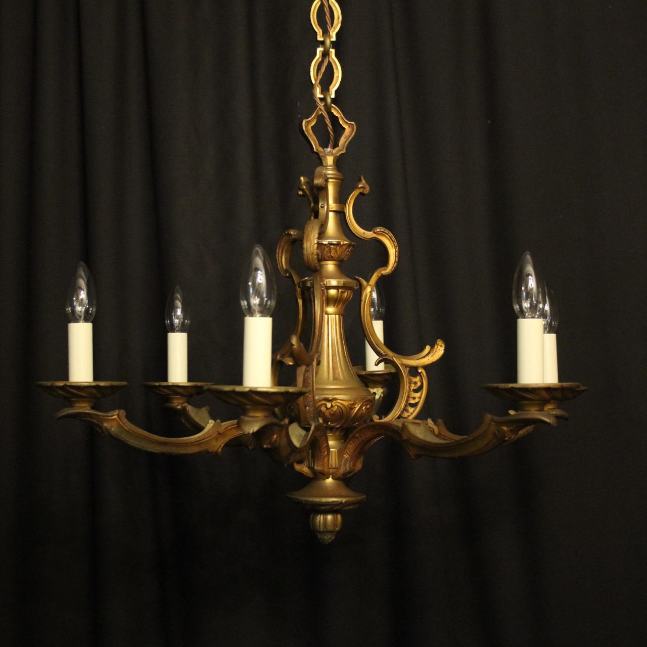French Gilded Bronze 6 Light Antique Chandelier