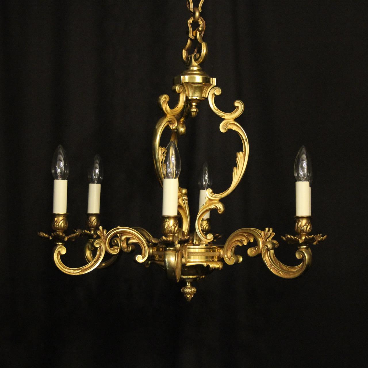 French Gilded Bronze 6 Light Antique Chandelier