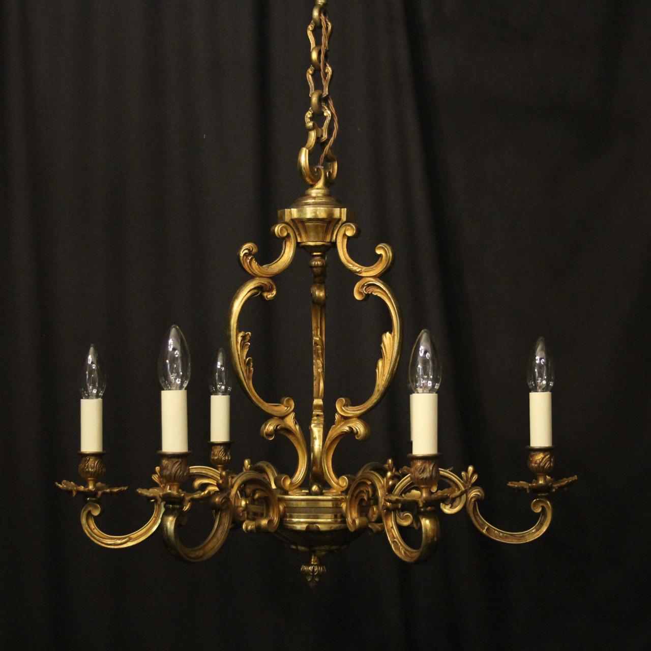 French Gilded Bronze 6 Light Antique Chandelier