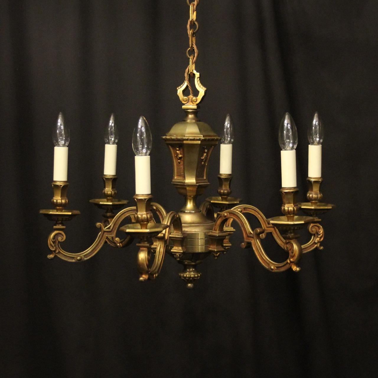 French Gilded Bronze 6 Light Antique Chandelier