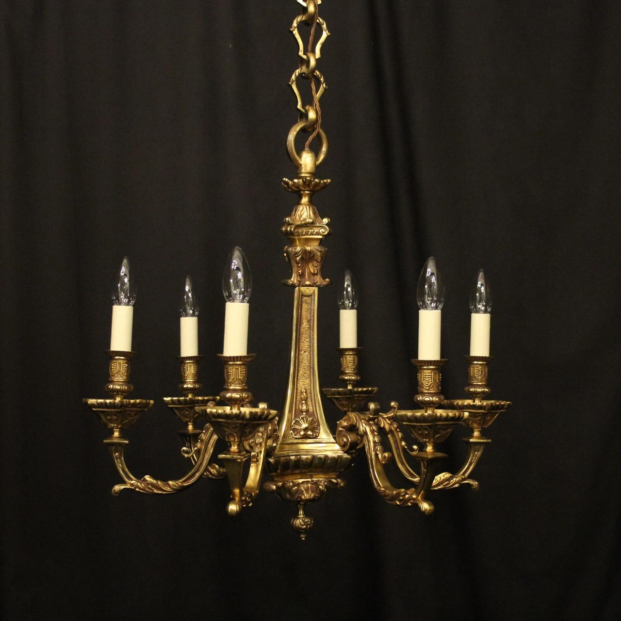 French Gilded Bronze 6 Light Antique Chandelier