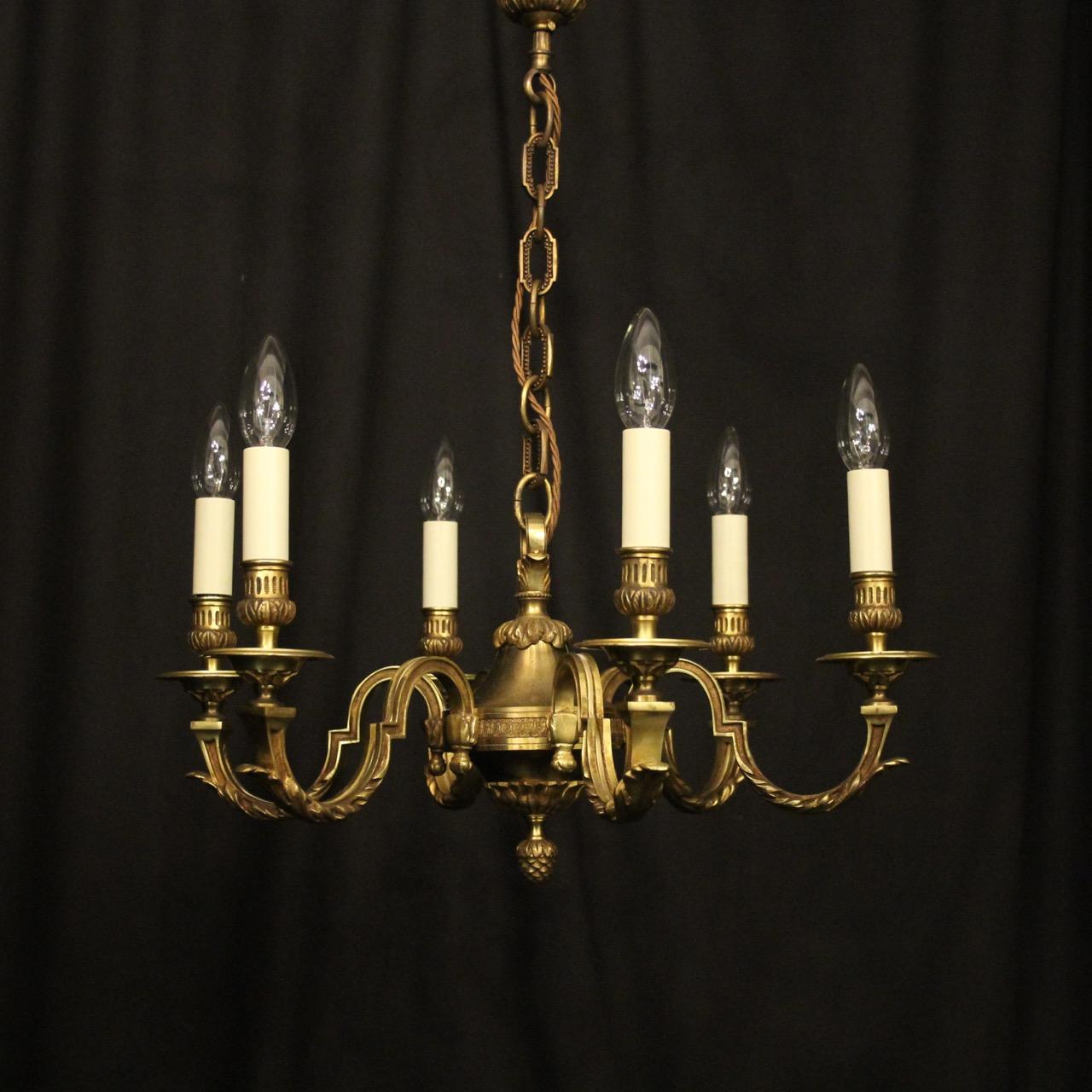 French Gilded Bronze 6 Light Antique Chandelier