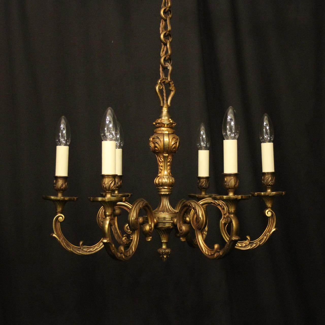 French Gilded Bronze 6 Light Antique Chandelier