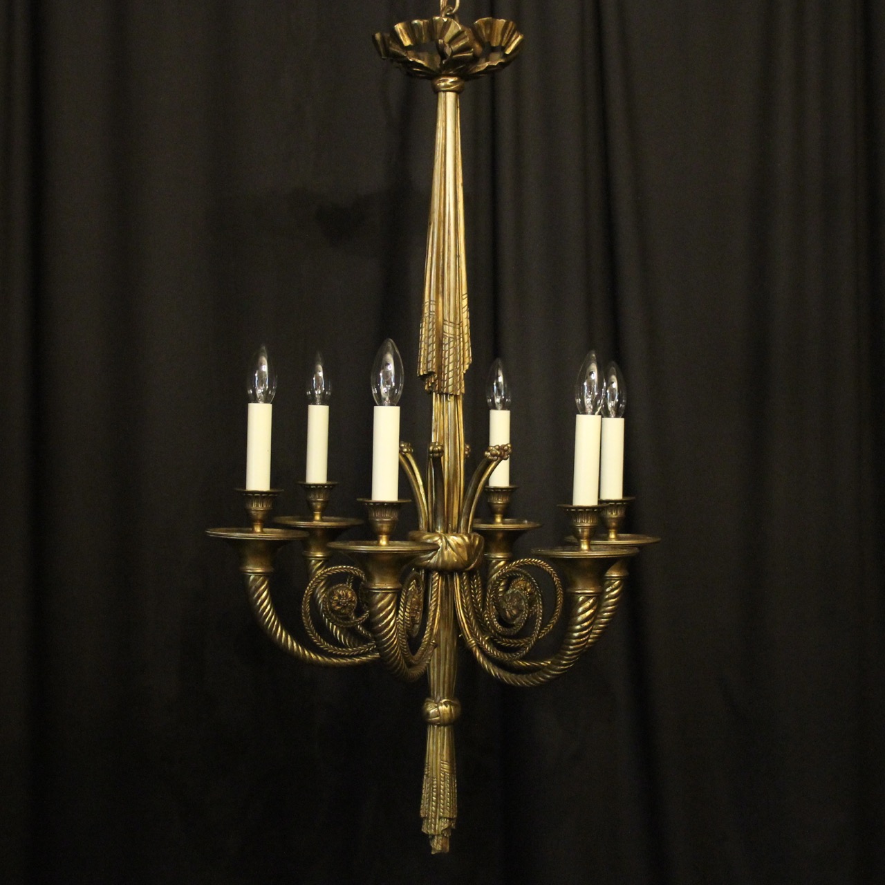 French Gilded Bronze 6 Light Antique Chandelier c.1890