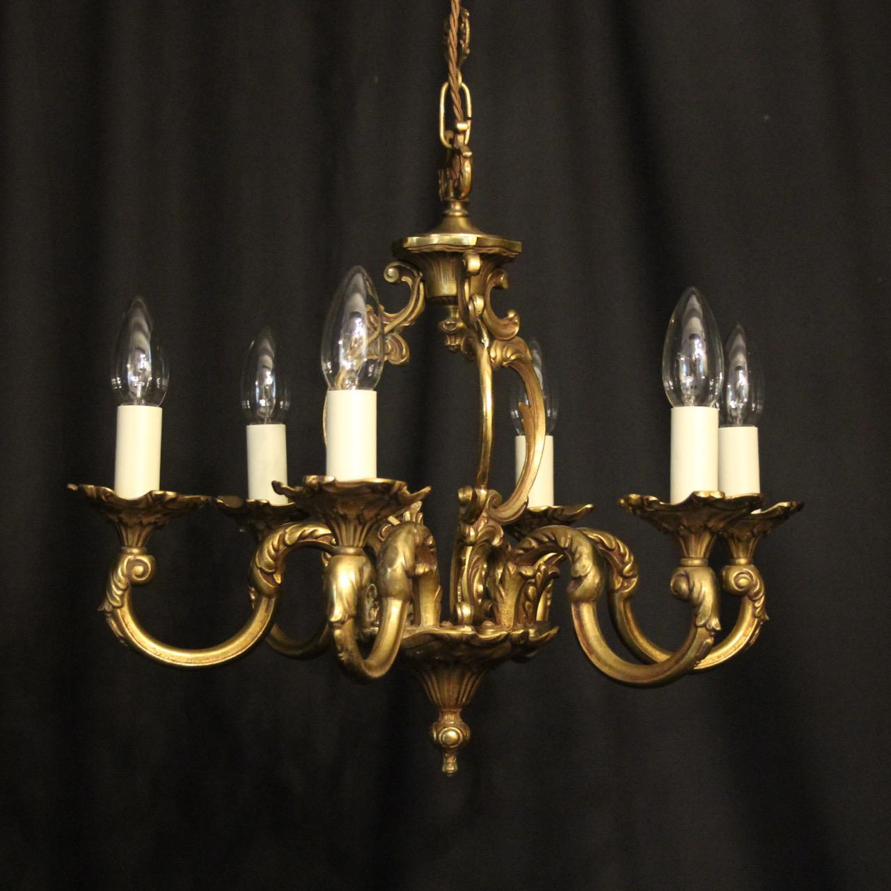 French Gilded Bronze 6 Light Chandelier