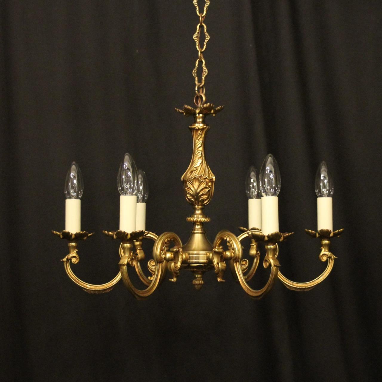 French Gilded Bronze 6 Light Chandelier