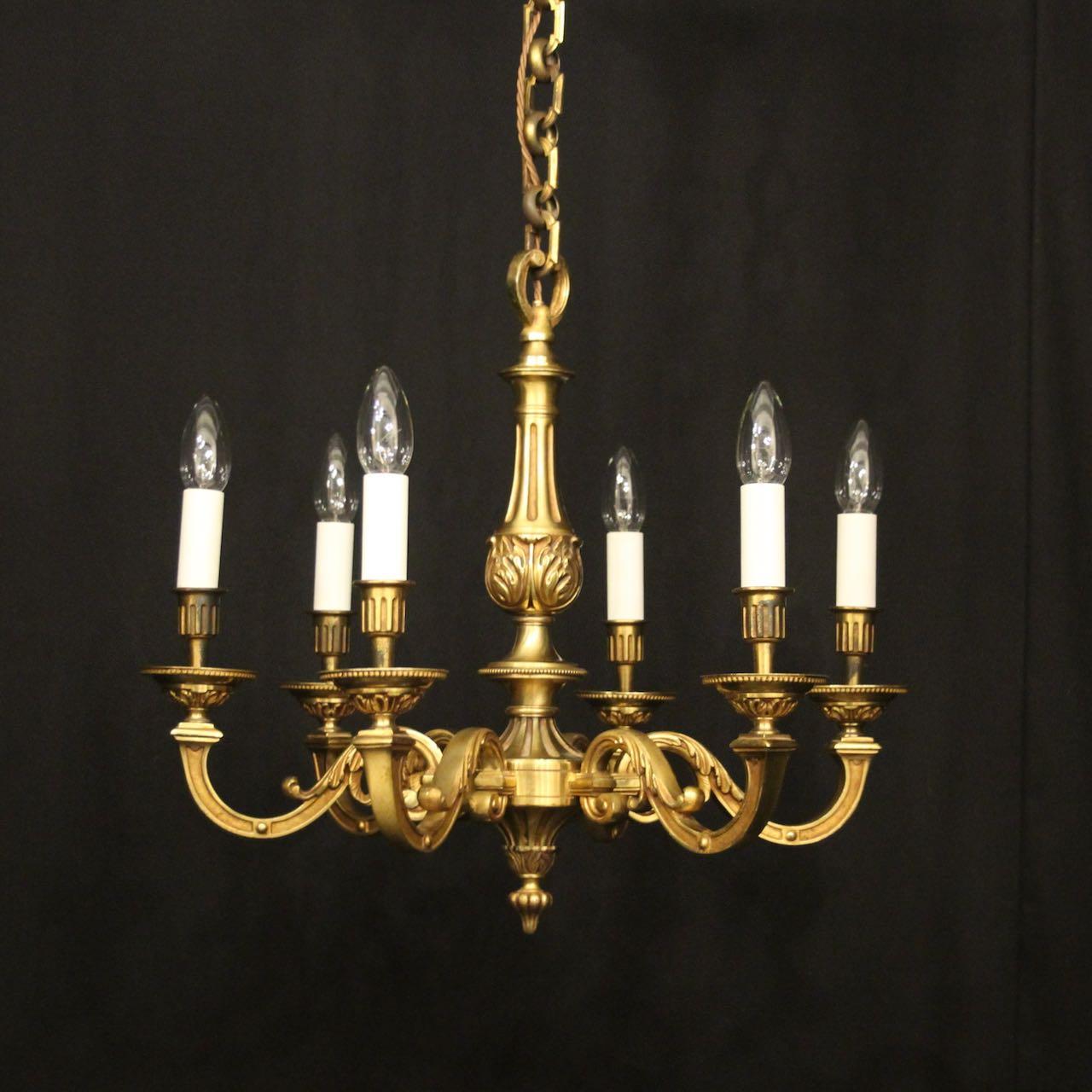 French Gilded Bronze 6 Light Chandelier