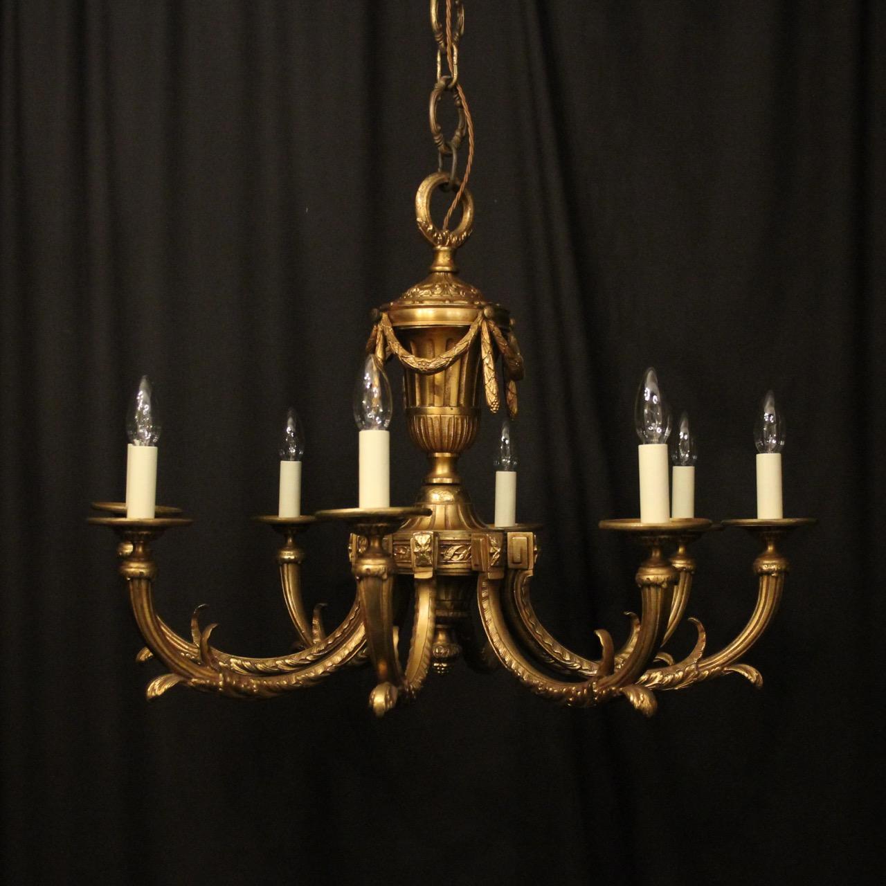 French Gilded Bronze 8 Light Antique Chandelier
