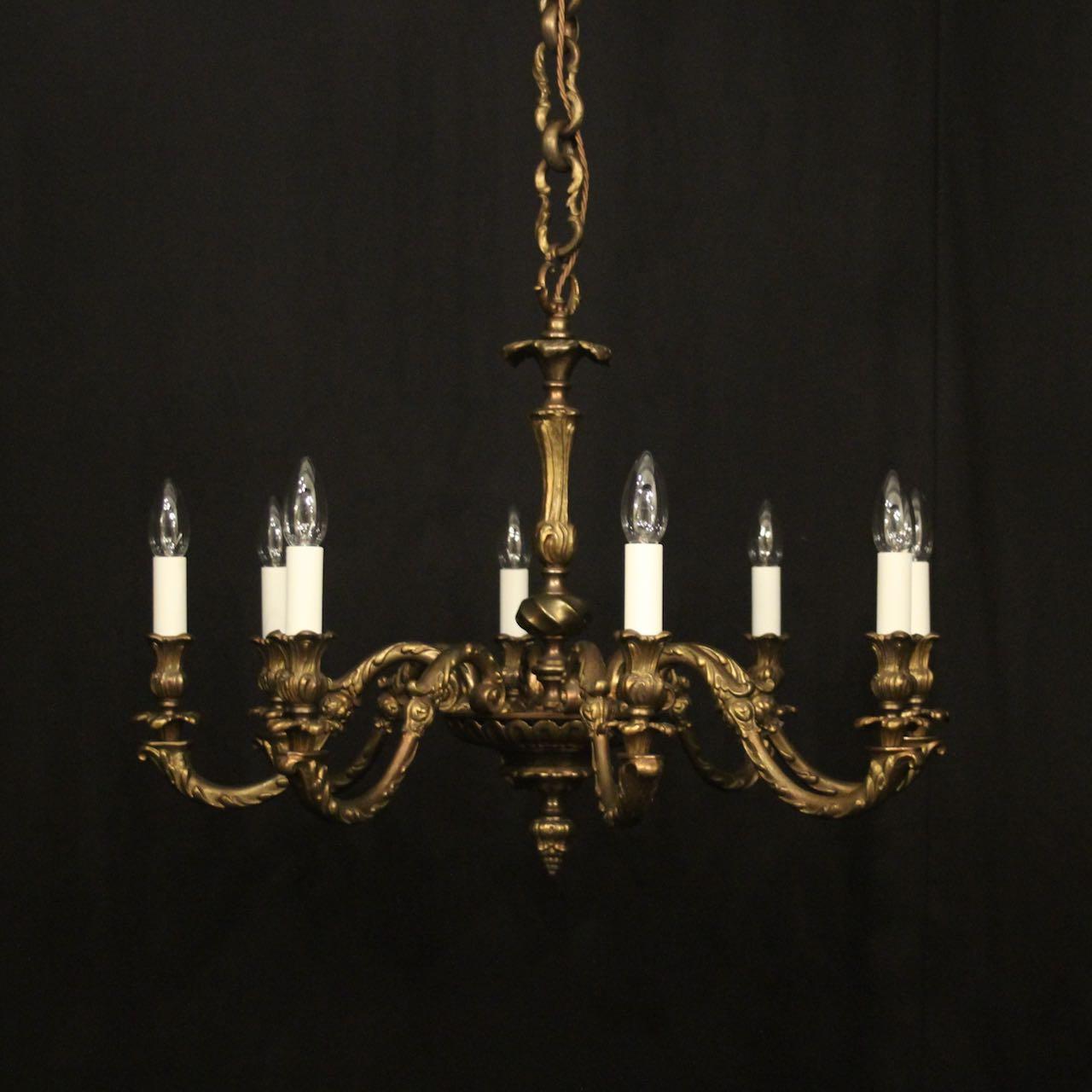 French Gilded Bronze 8 Light Antique Chandelier
