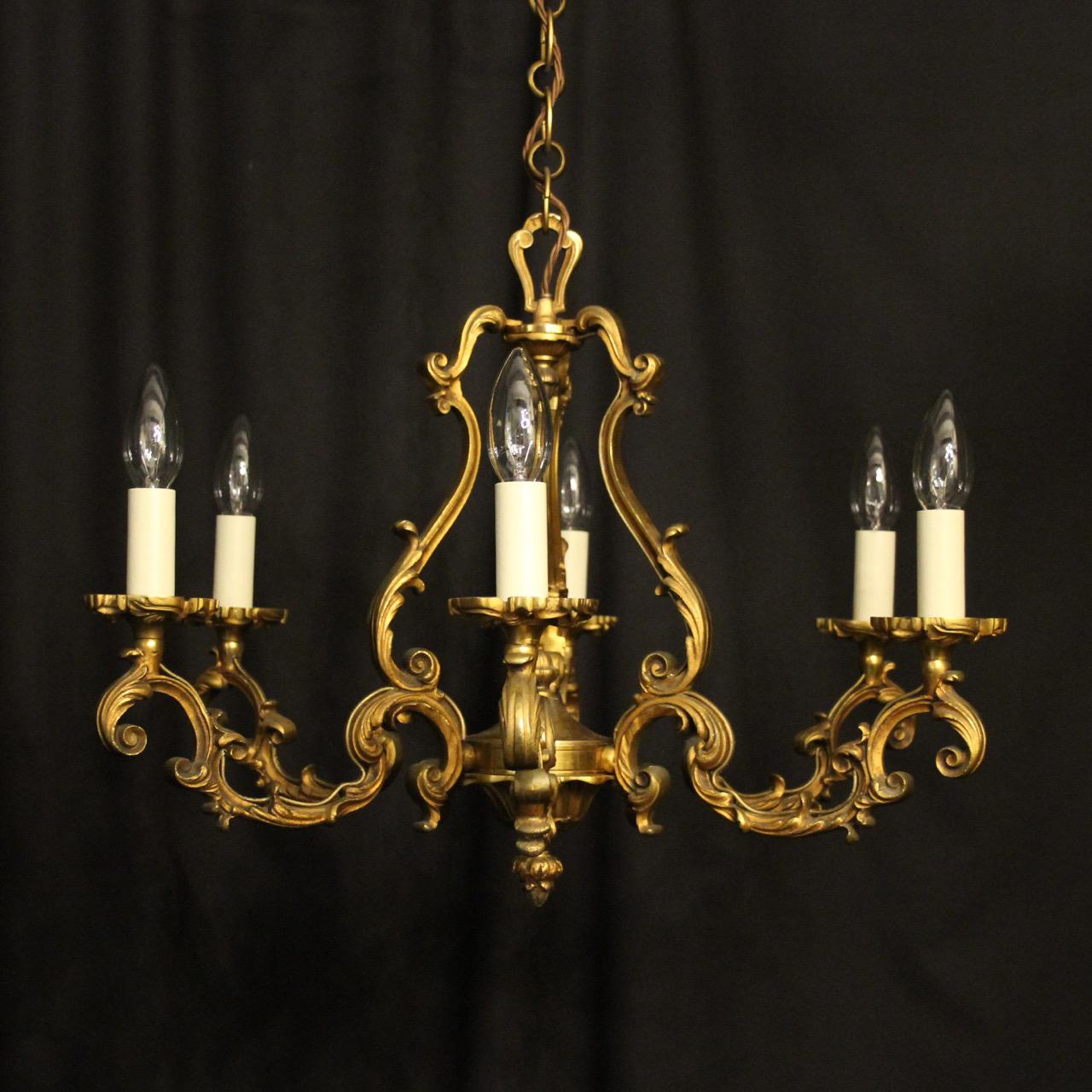 French Gilded Bronze 8 Light Rococo Chandelier c.1930