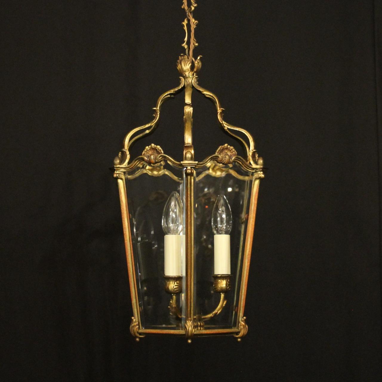 French Gilded Bronze Antique Hall Lantern