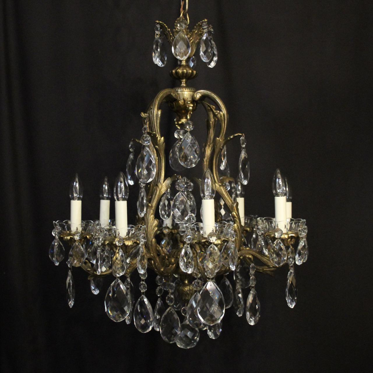 French Gilded Bronze & Crystal 8 Light Antique Chandelier