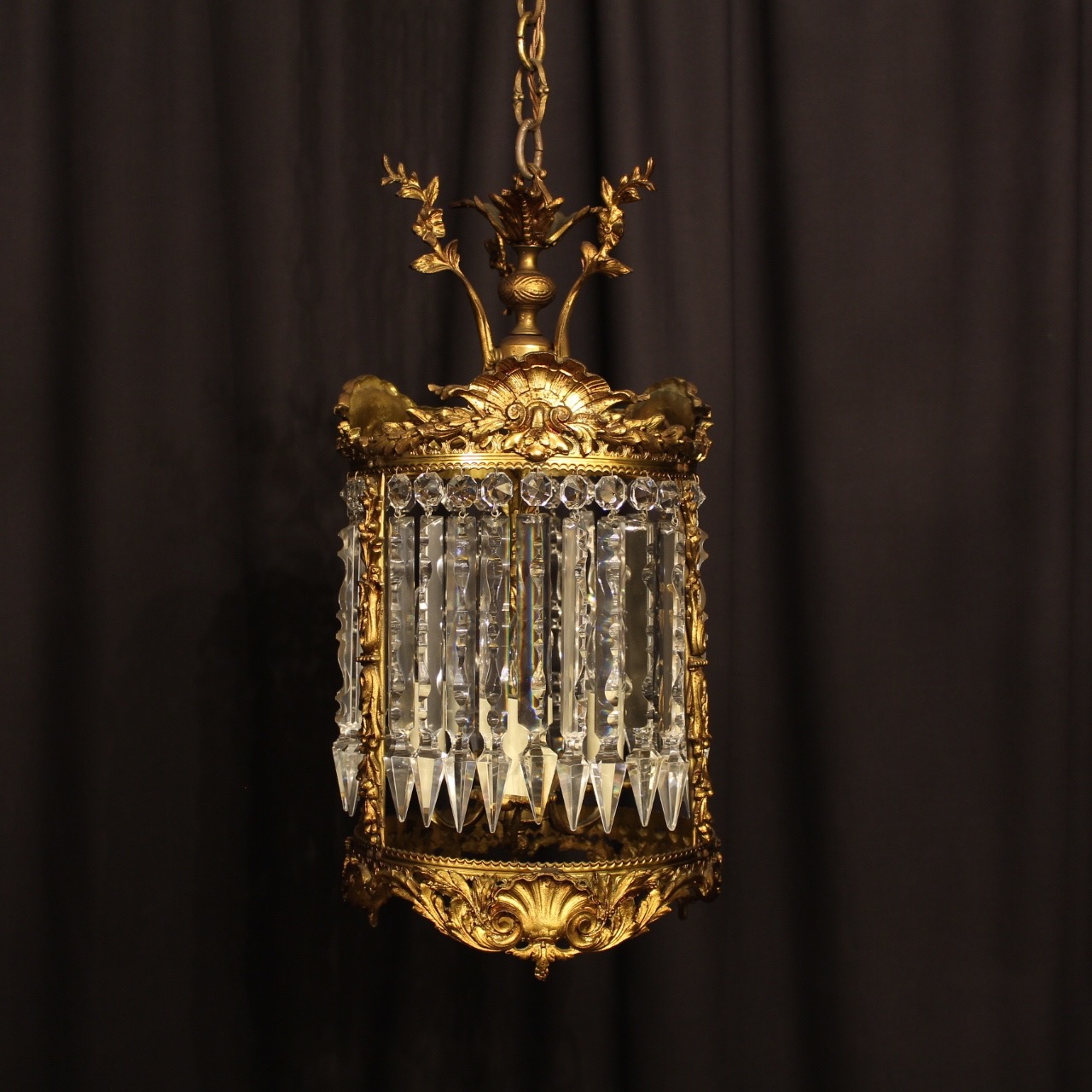 French Gilded Bronze & Crystal Antique Light