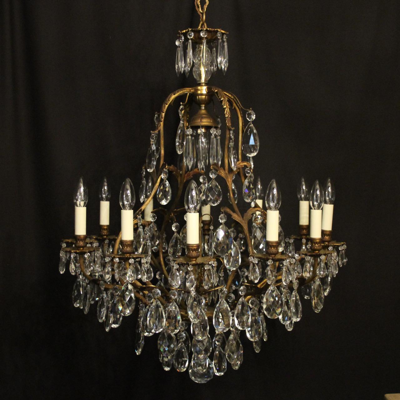 French Gilded Bronze Crystal Birdcage 13 Light Antique Chandelier