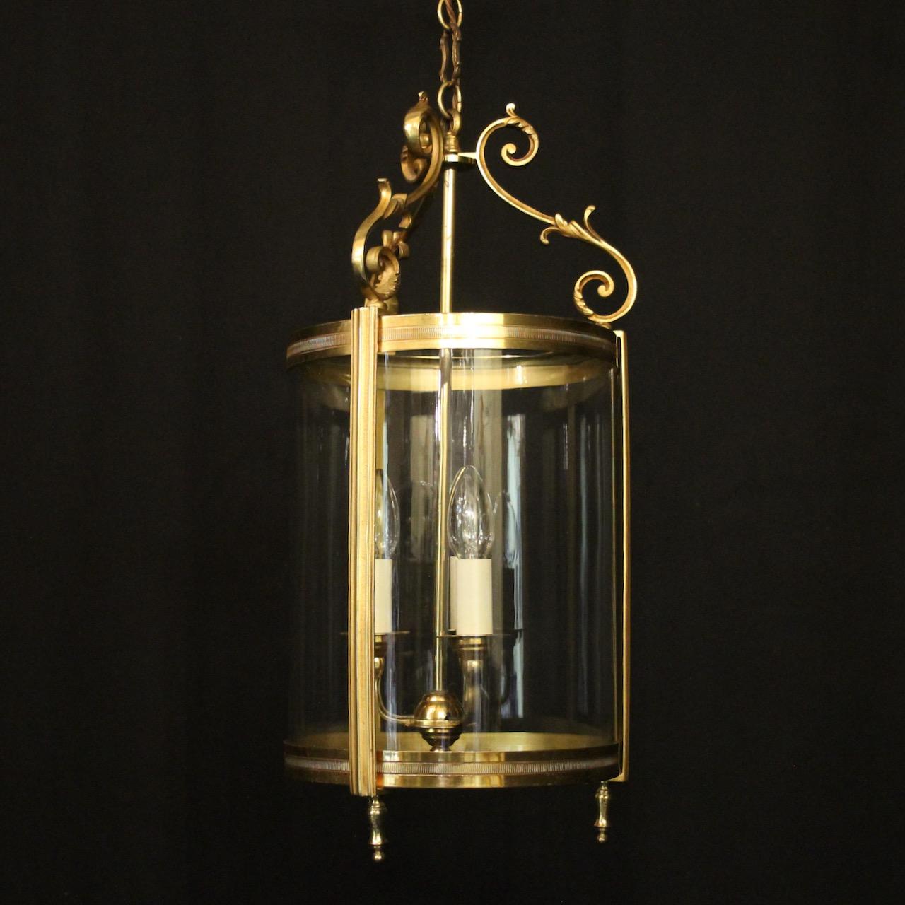 French Gilded Bronze Triple Light Antique Hall Lantern