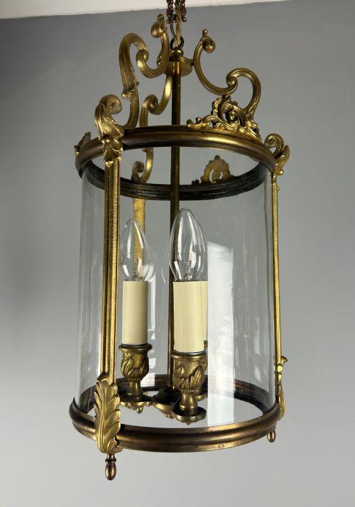 French Gilded Bronze Triple Light Hall Lantern, Rewired