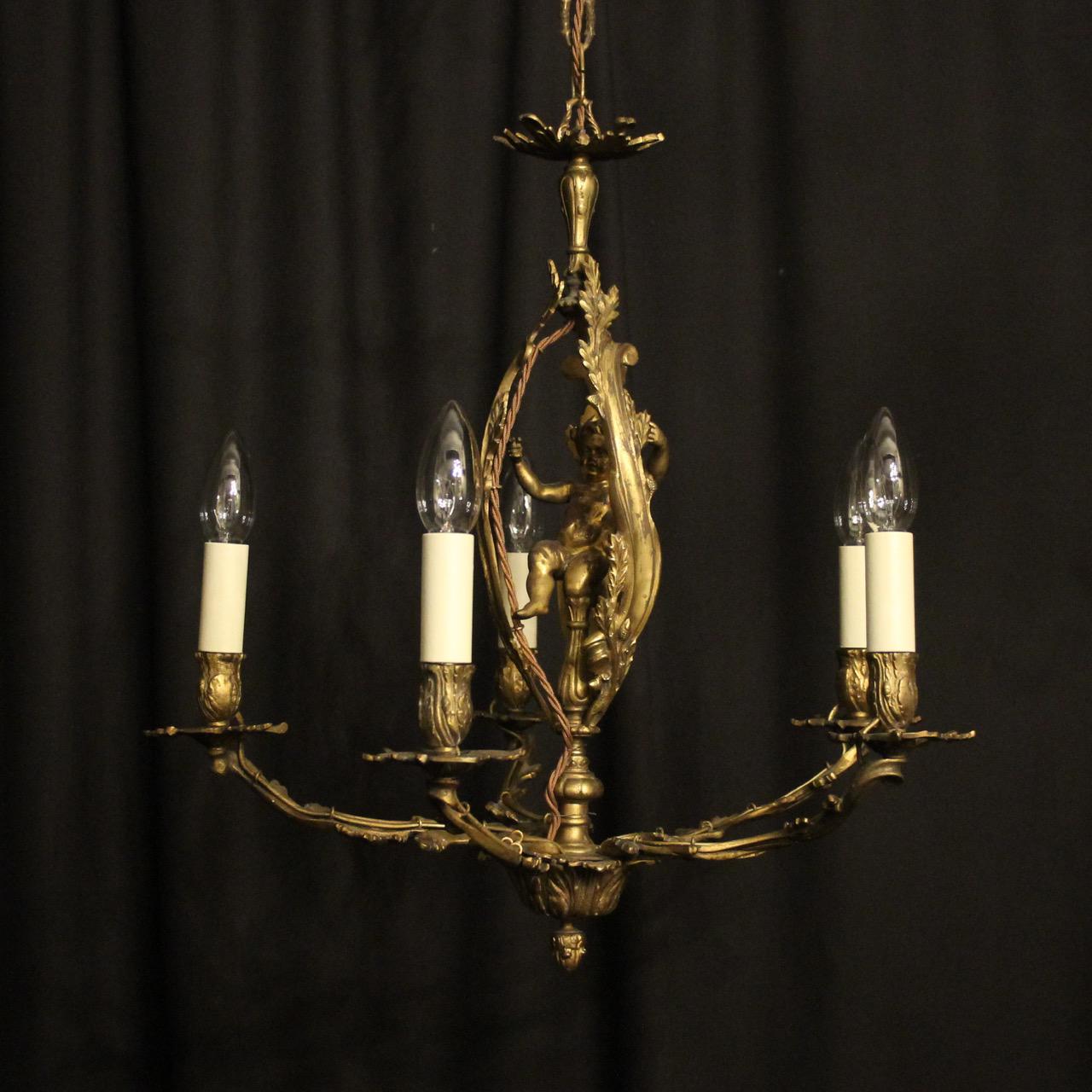 French Gilded Cherub 5 Light Antique Chandelier