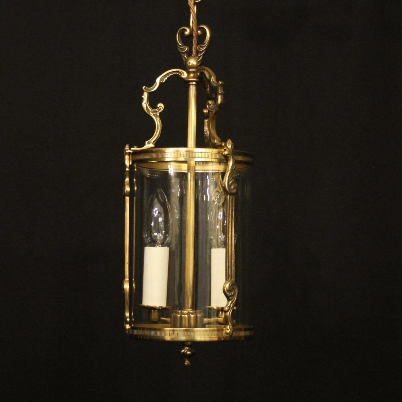 French Gilded Convex Twin Light Hall Lantern