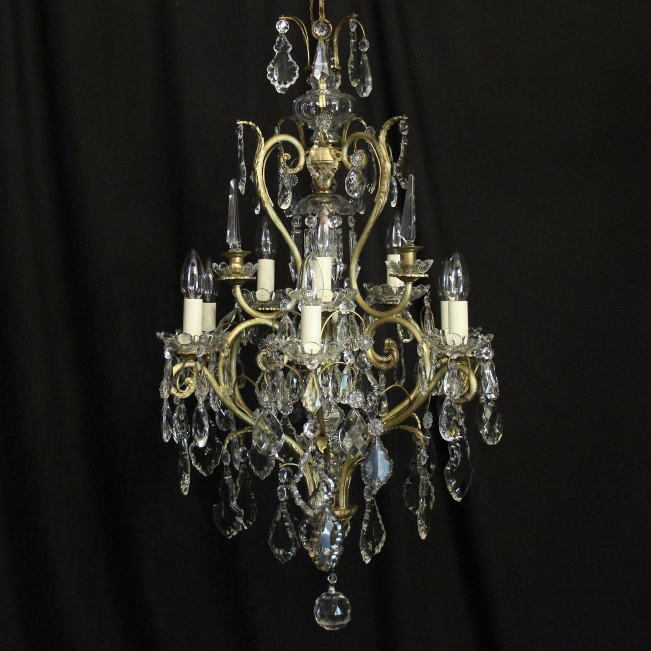 French Gilded & Crystal 10 Light Birdcage Antique Chandelier