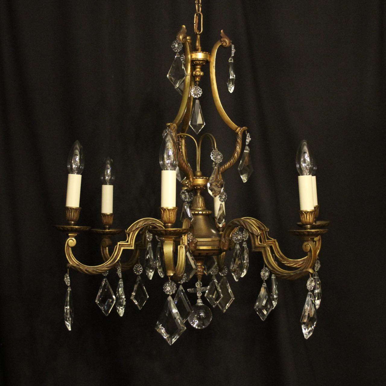 French Gilded & Crystal 6 Light Antique Chandelier