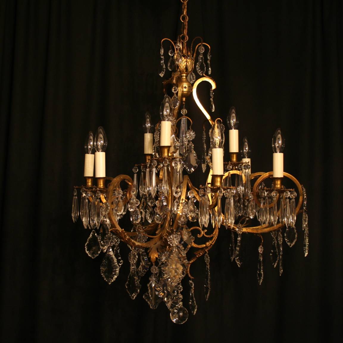 French Gilded Crystal 9 Light Antique Chandelier