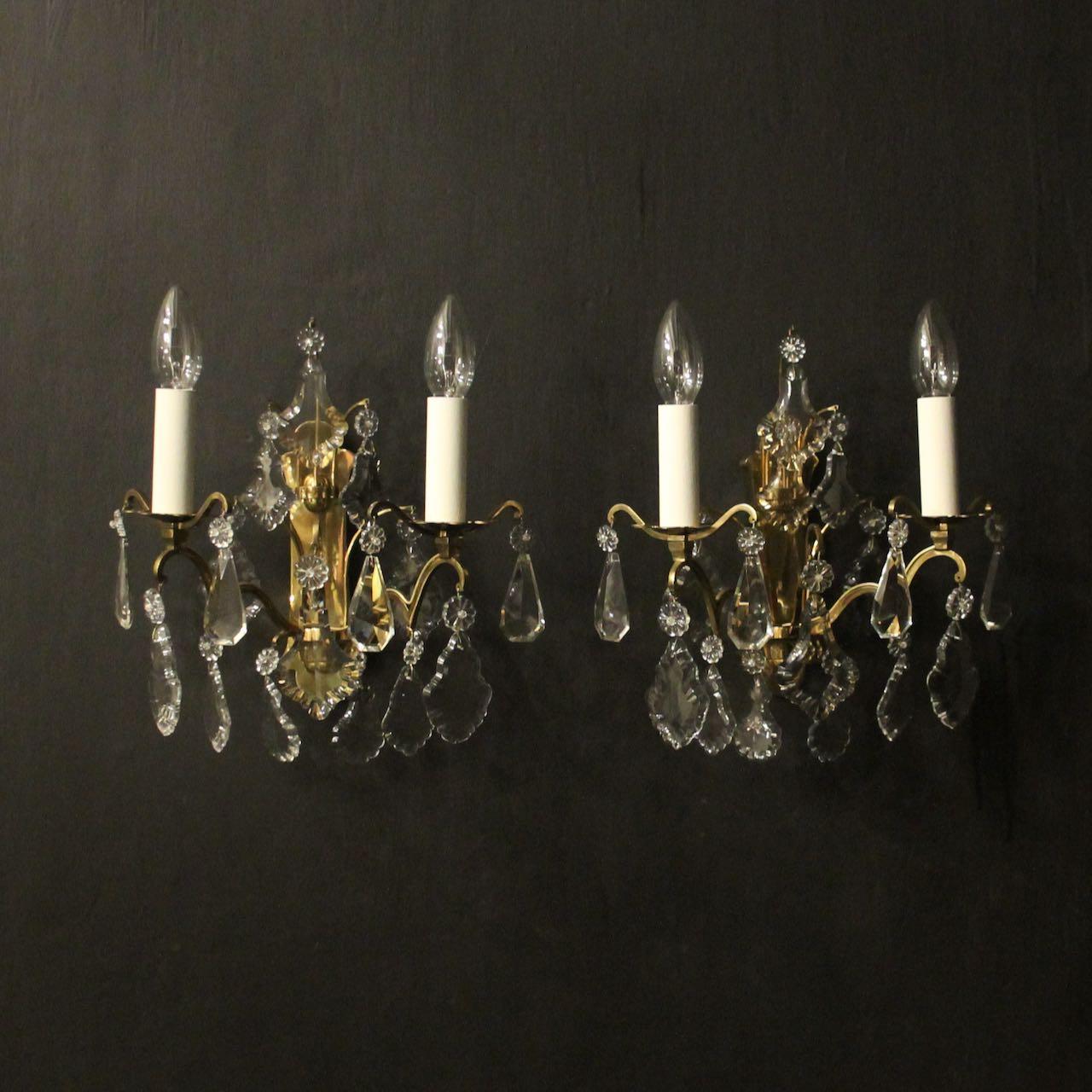 French Gilded & Crystal Twin Arm Wall Lights