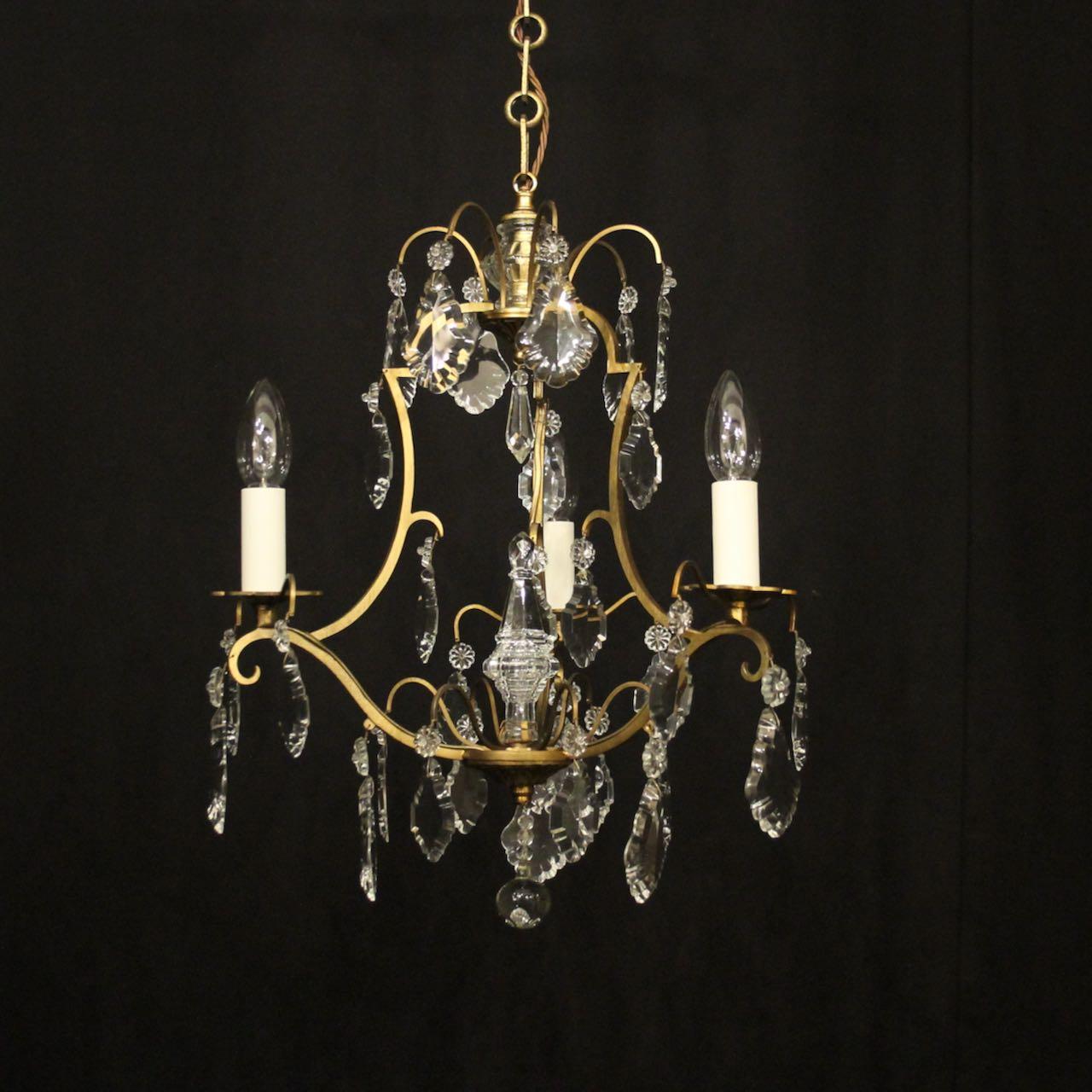 French Gilded Triple Light Birdcage Chandelier