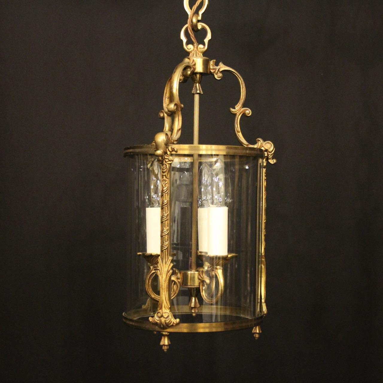 French Gilded Triple Light Convex Hall Lantern