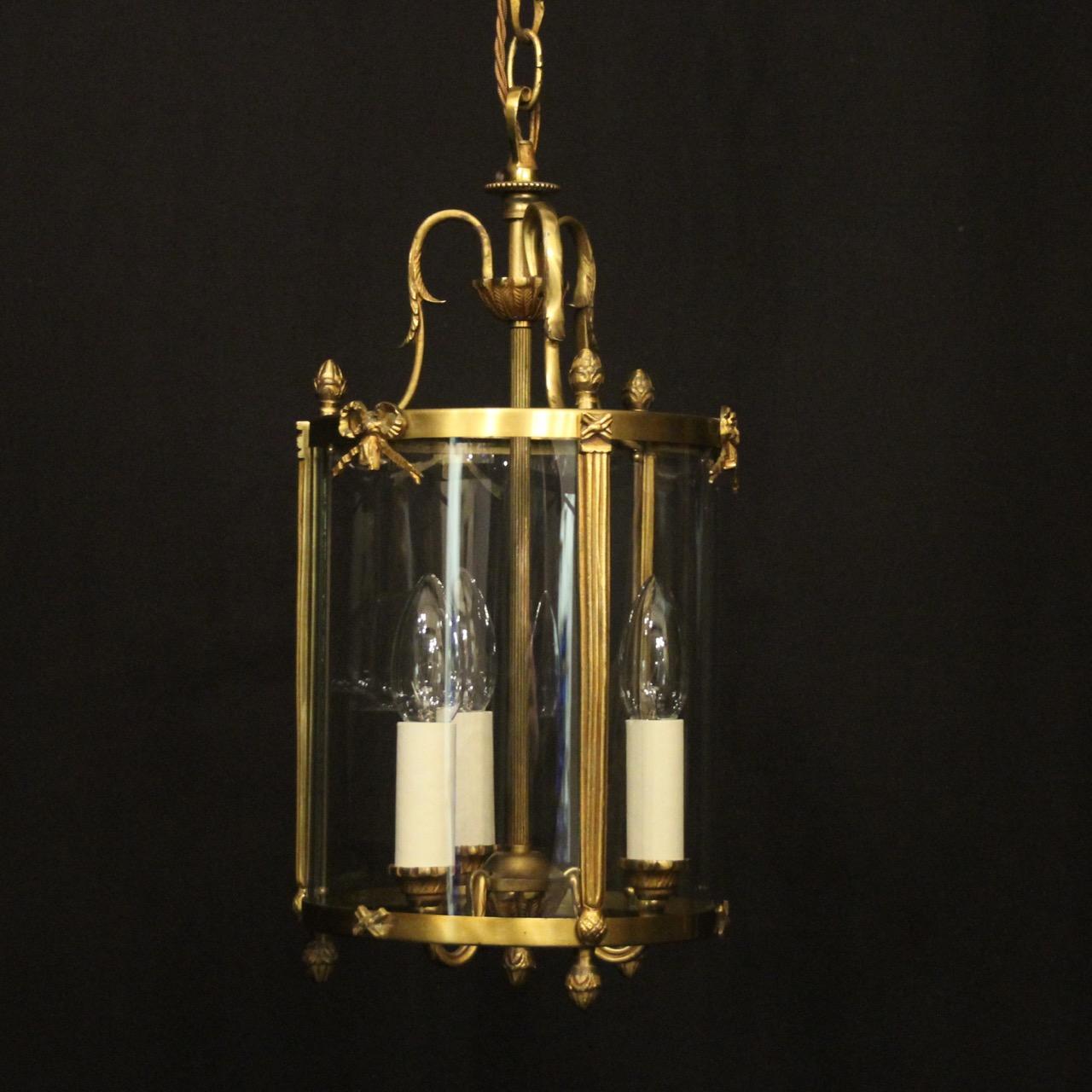 French Gilded Triple Light Convex Hall Lantern