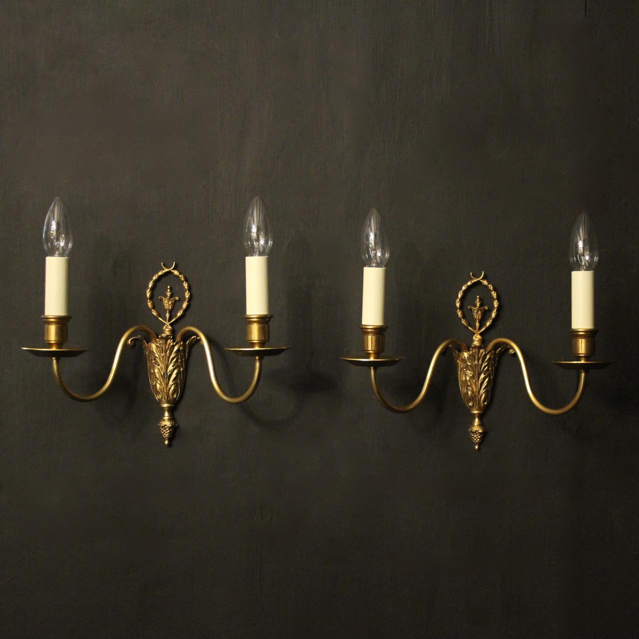 French Gilded Twin Arm Antique Leaf Wall Lights