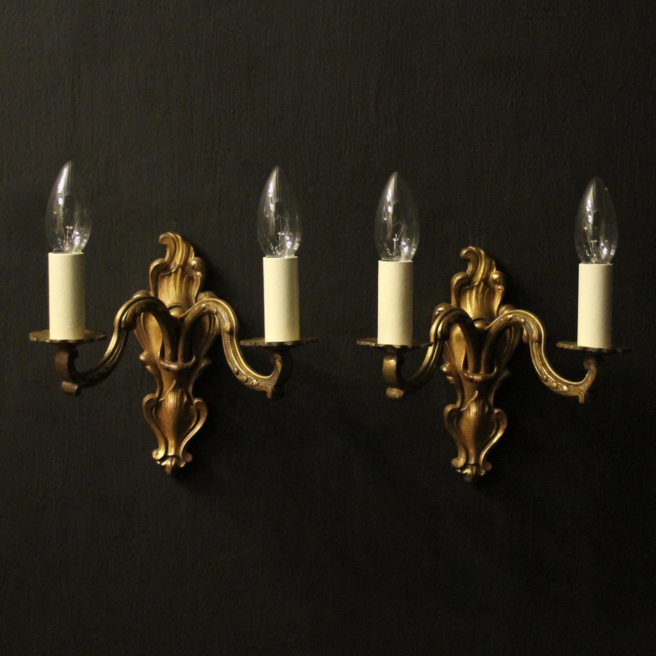 French Gilded Twin Arm Antique Wall Lights