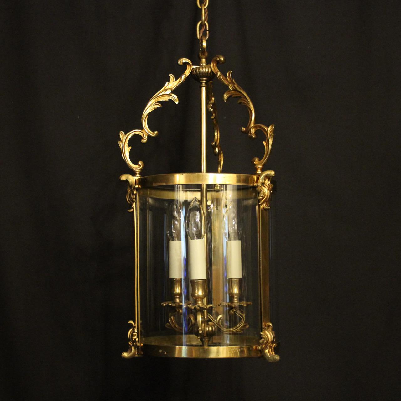 French Gilt Bronze Convex Antique Hall Lantern