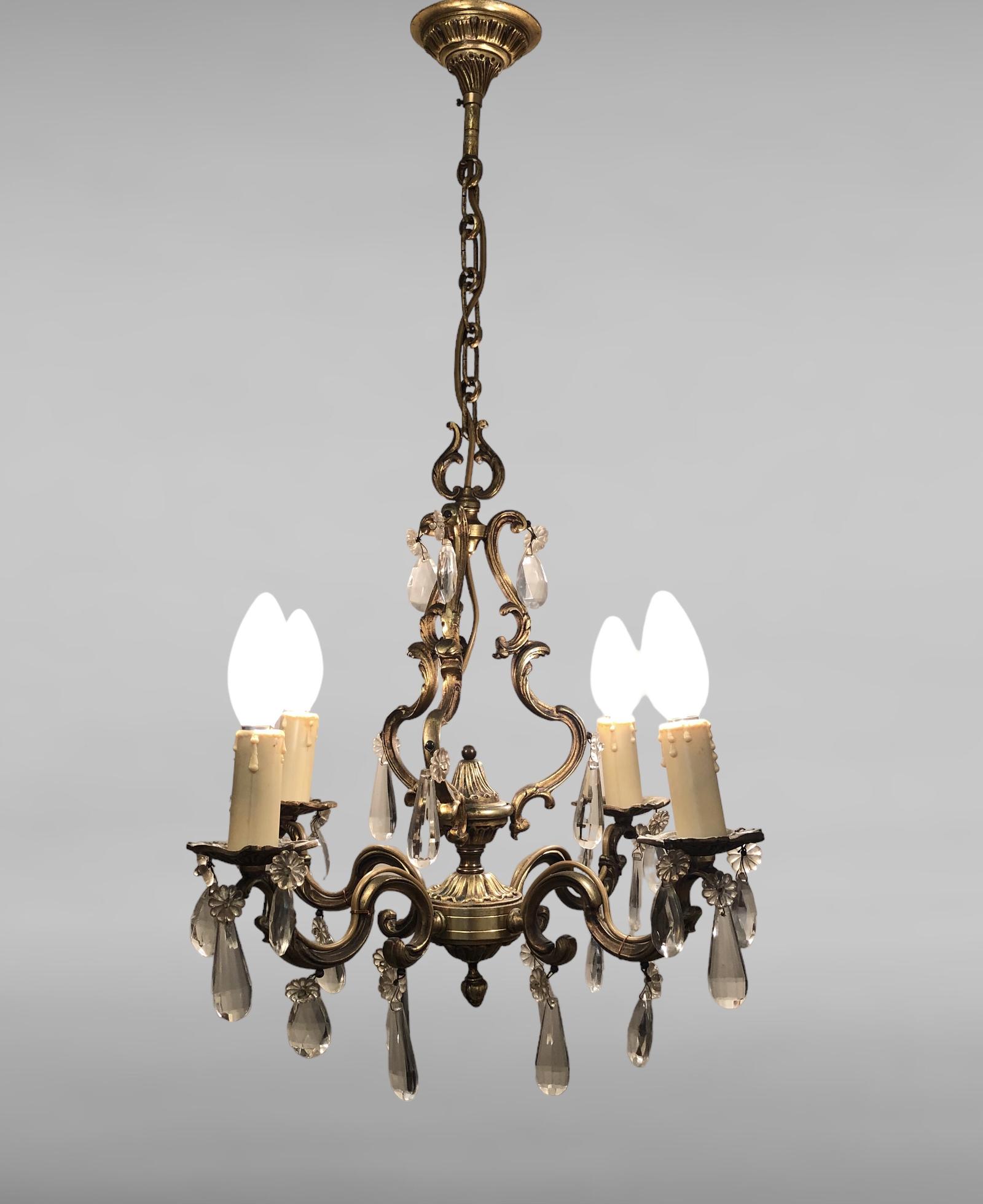 French Gilt Bronze Petite Crystal Chandelier Ceiling Light