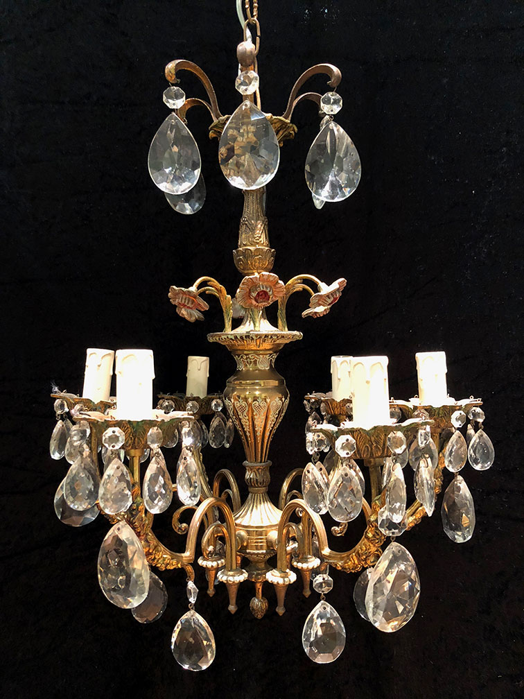 French Gilt Six Light Antique Chandelier