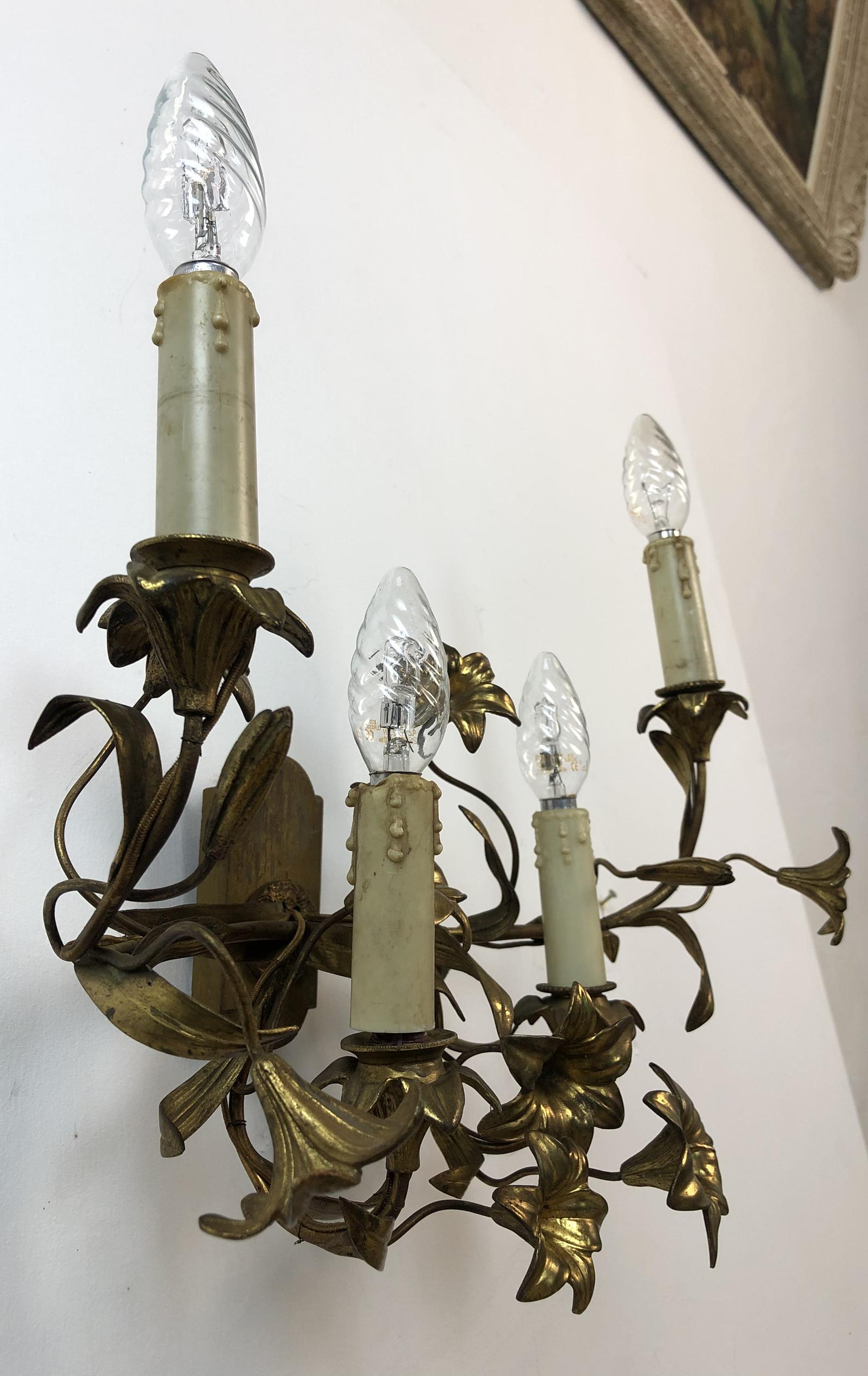 French Gilt Toleware Lilly Wall Lights Sconces