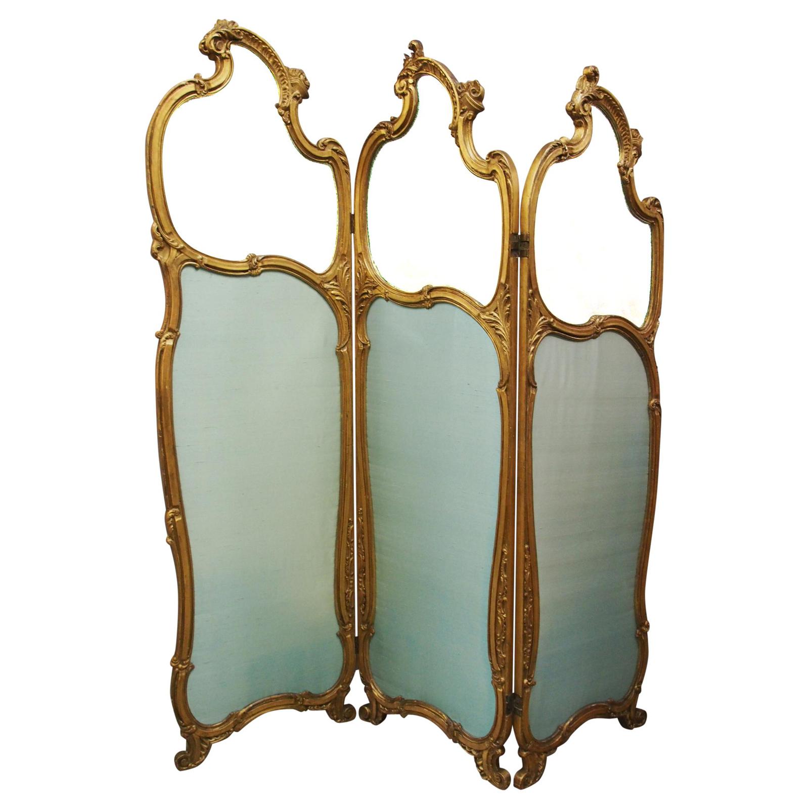 French Giltwood and Silk Three-Fold Screen (1 of 13)