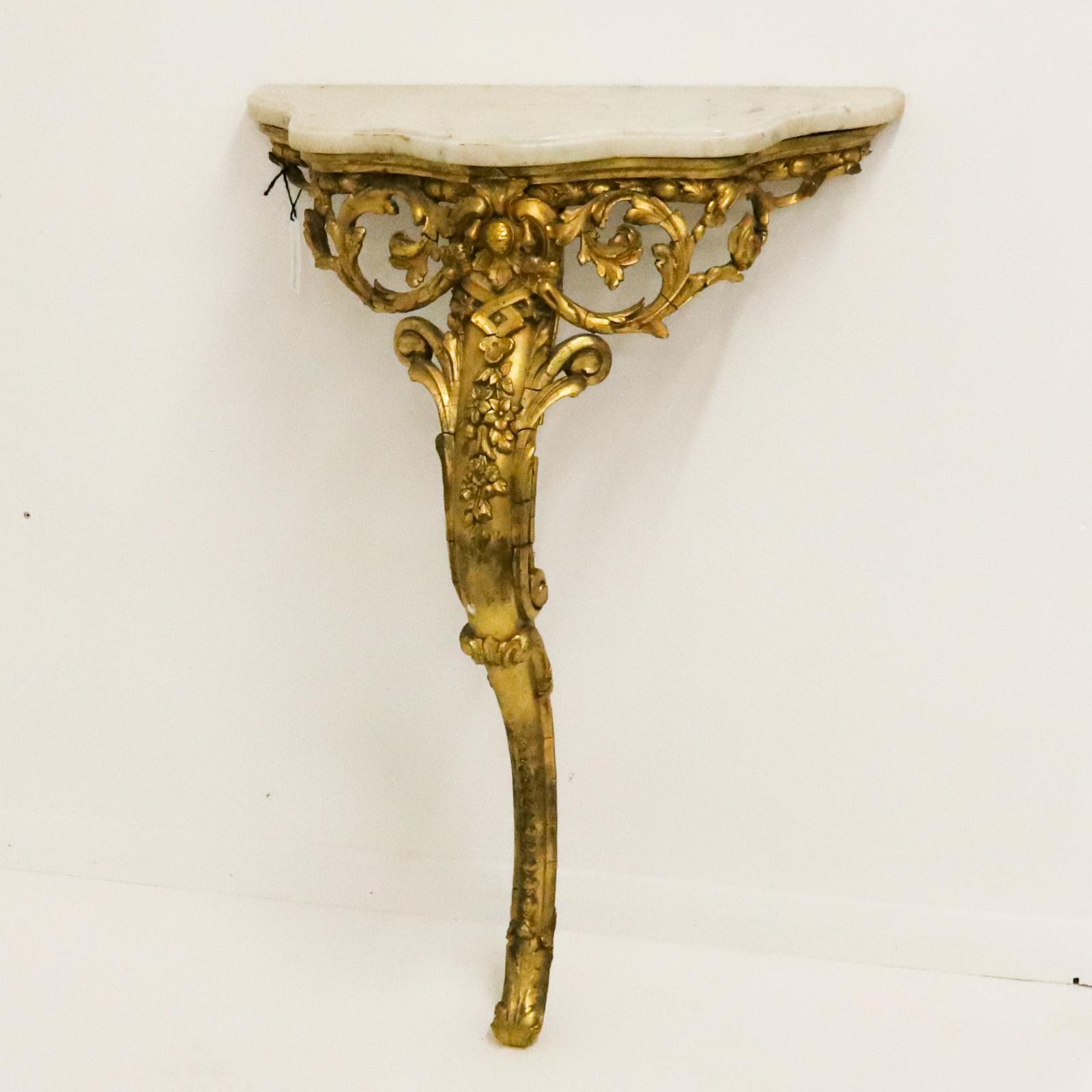 French Giltwood & Gesso Console Table Carrera Marble Top Central Monopodial Stand c.1860