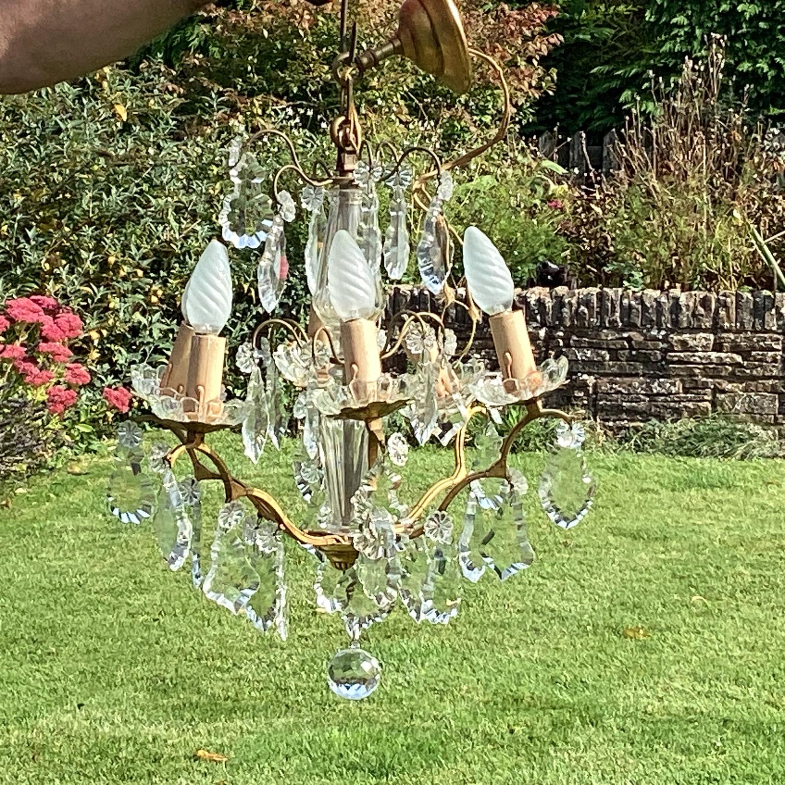 French Glass & Gilt Metal 6 Branch Chandelier c.1930 (1 of 12)
