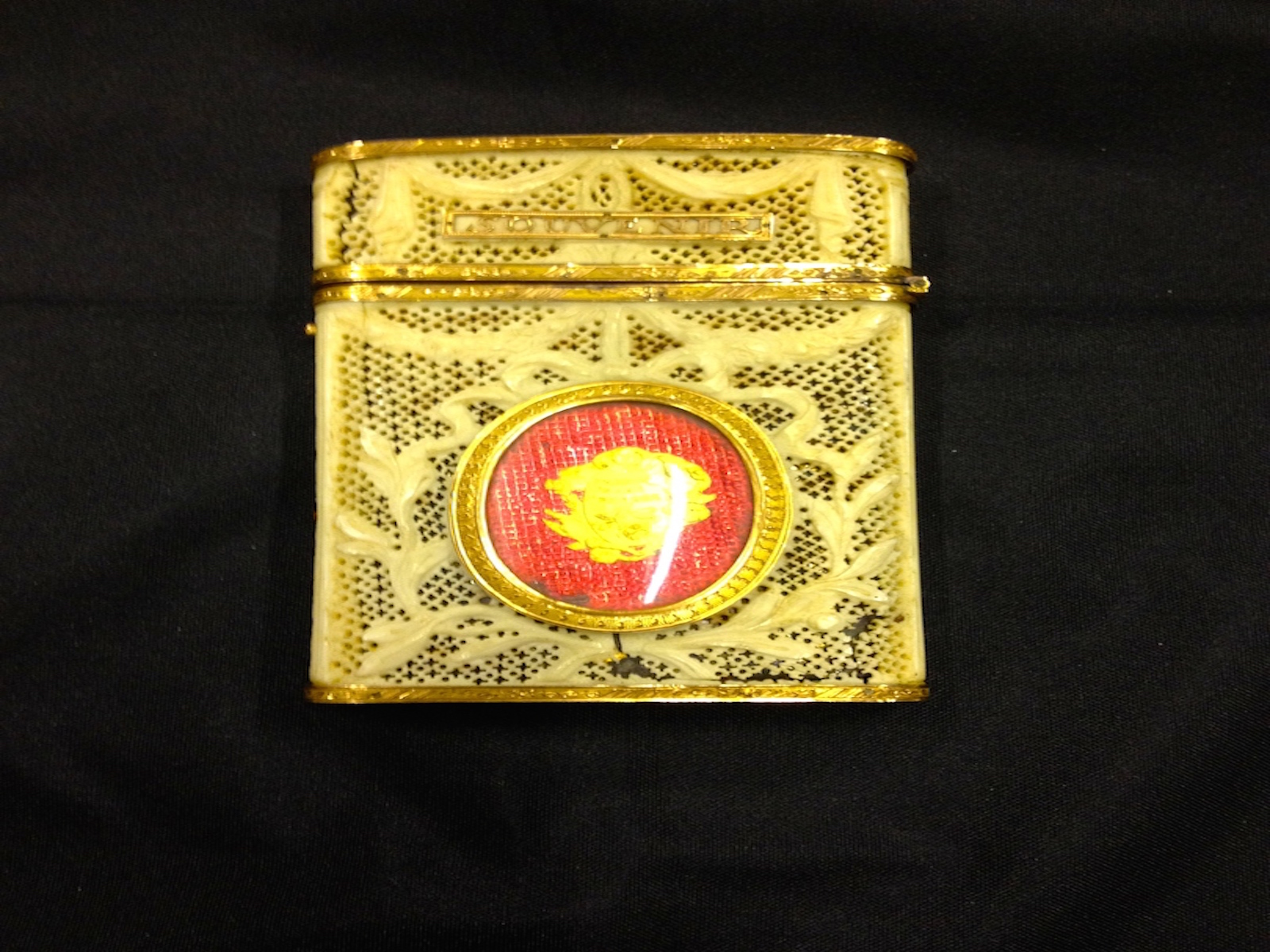 French Gold Mounted & Pierced Ivory Souvenir Card Case, Decorated with Oval Panels C.1780
