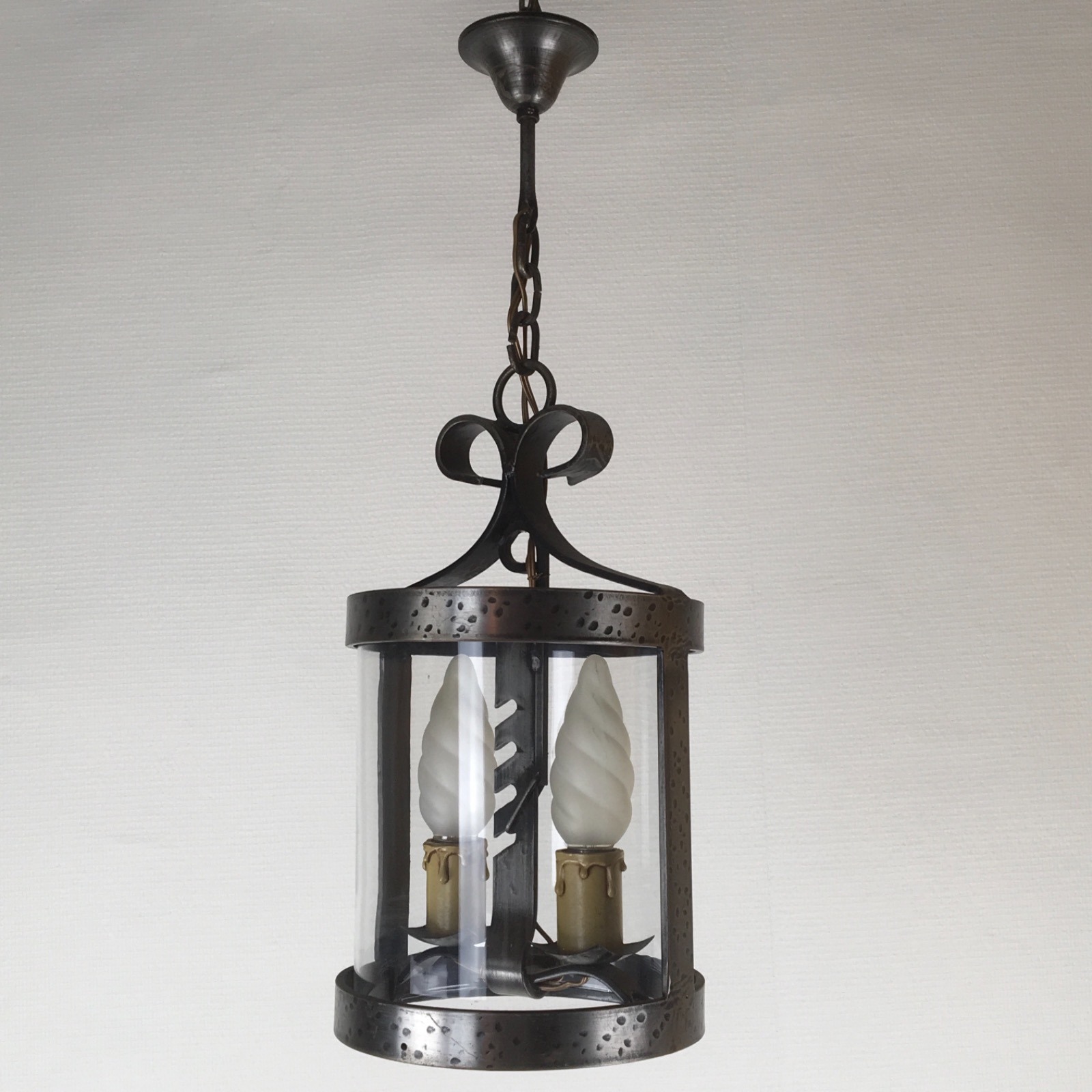French Gothic Medieval Style Iron Cylinder Lantern Porch Pendant