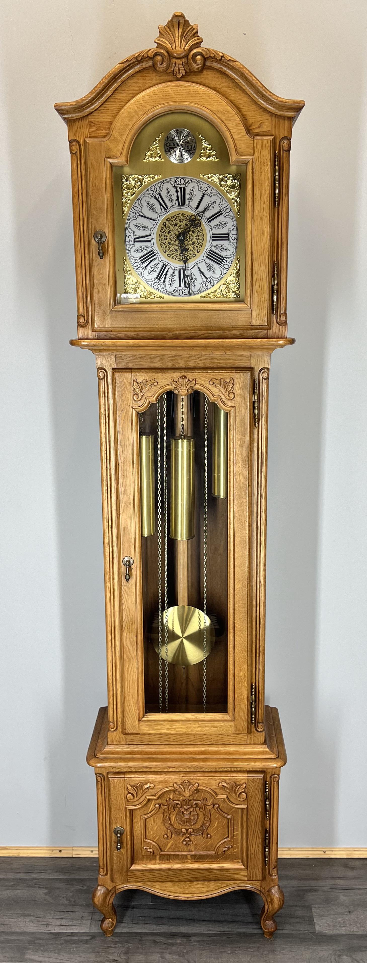 French Grandfather Clock / Vintage Oak Retro Longcase Clock