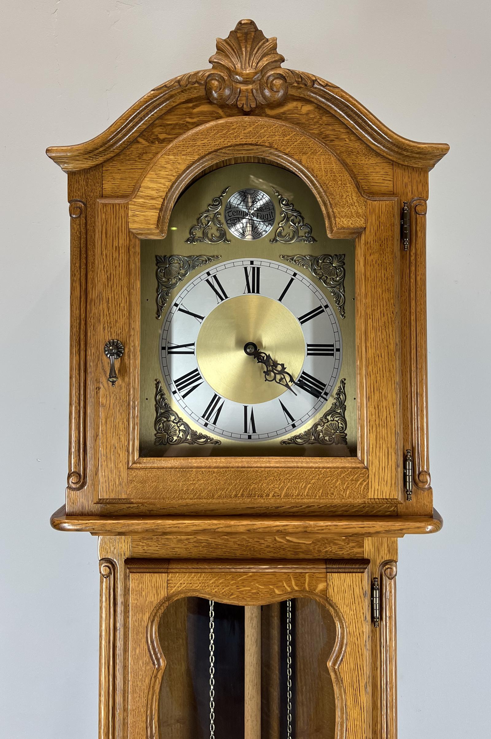 French Grandfather Clock / Vintage Oak Retro Longcase Clock