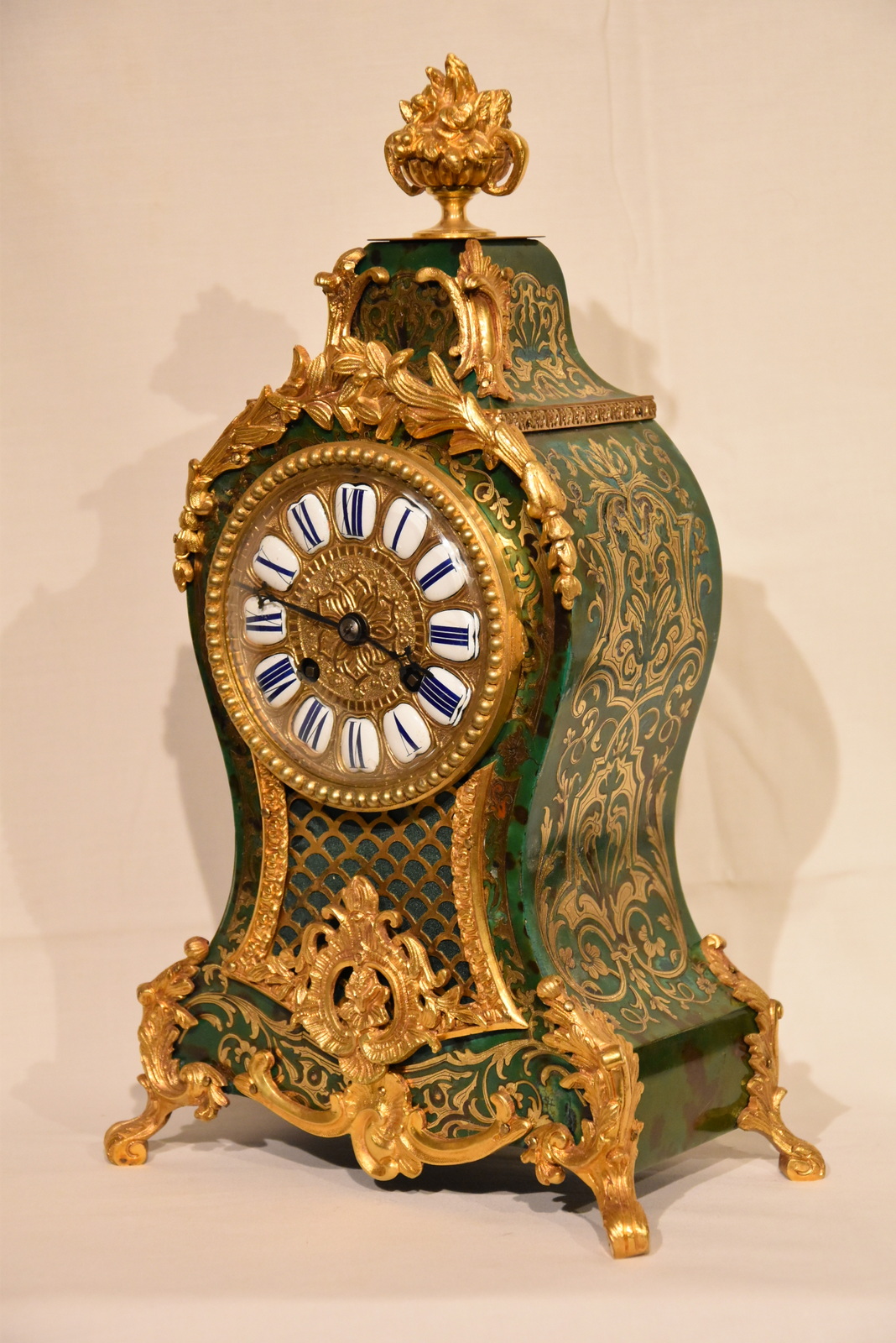French Green Boulle Mantel Clock C.1880 (1 of 1)