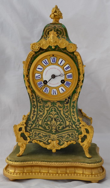 French Green Boulle Tortoiseshell Mantel Clock (1 of 1)