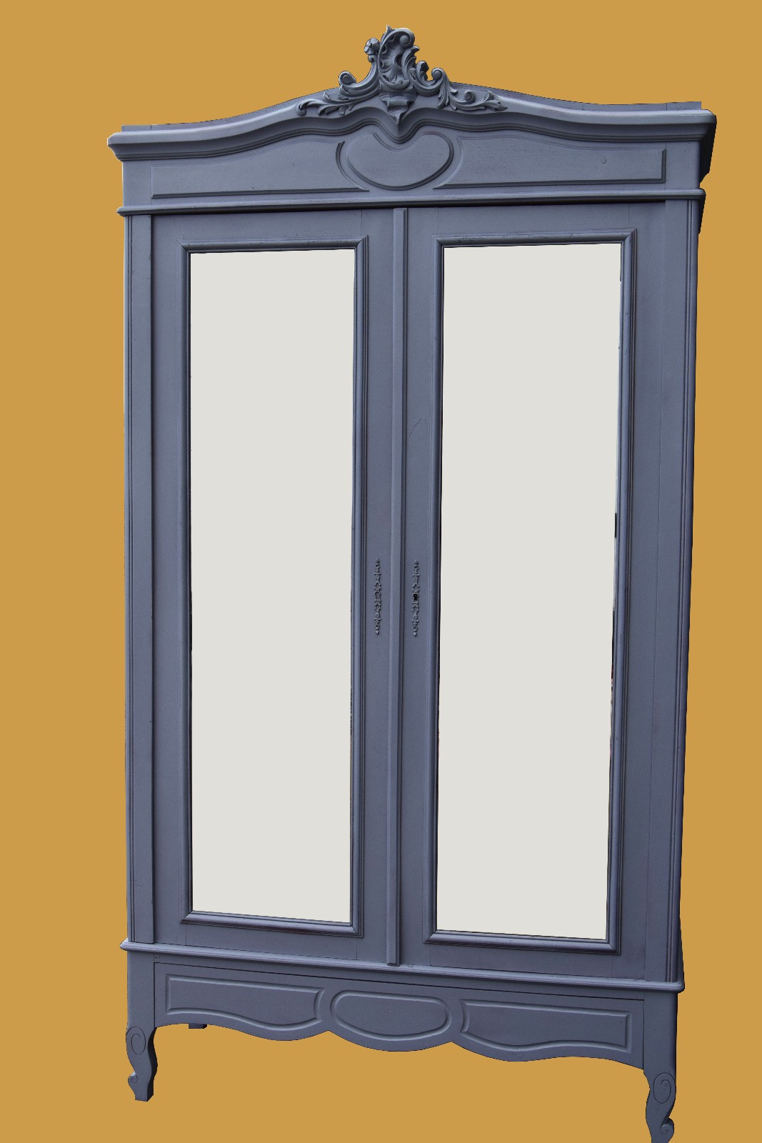French Grey Louis XV Rococo Double Armoire Linen Cupboard