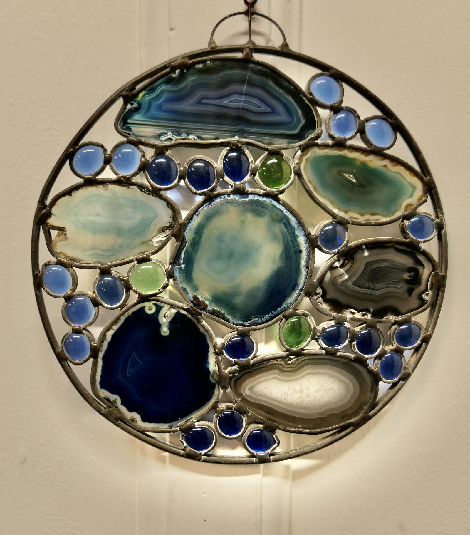 French Hand Made Antique Jewel Glass Agate Window Panel